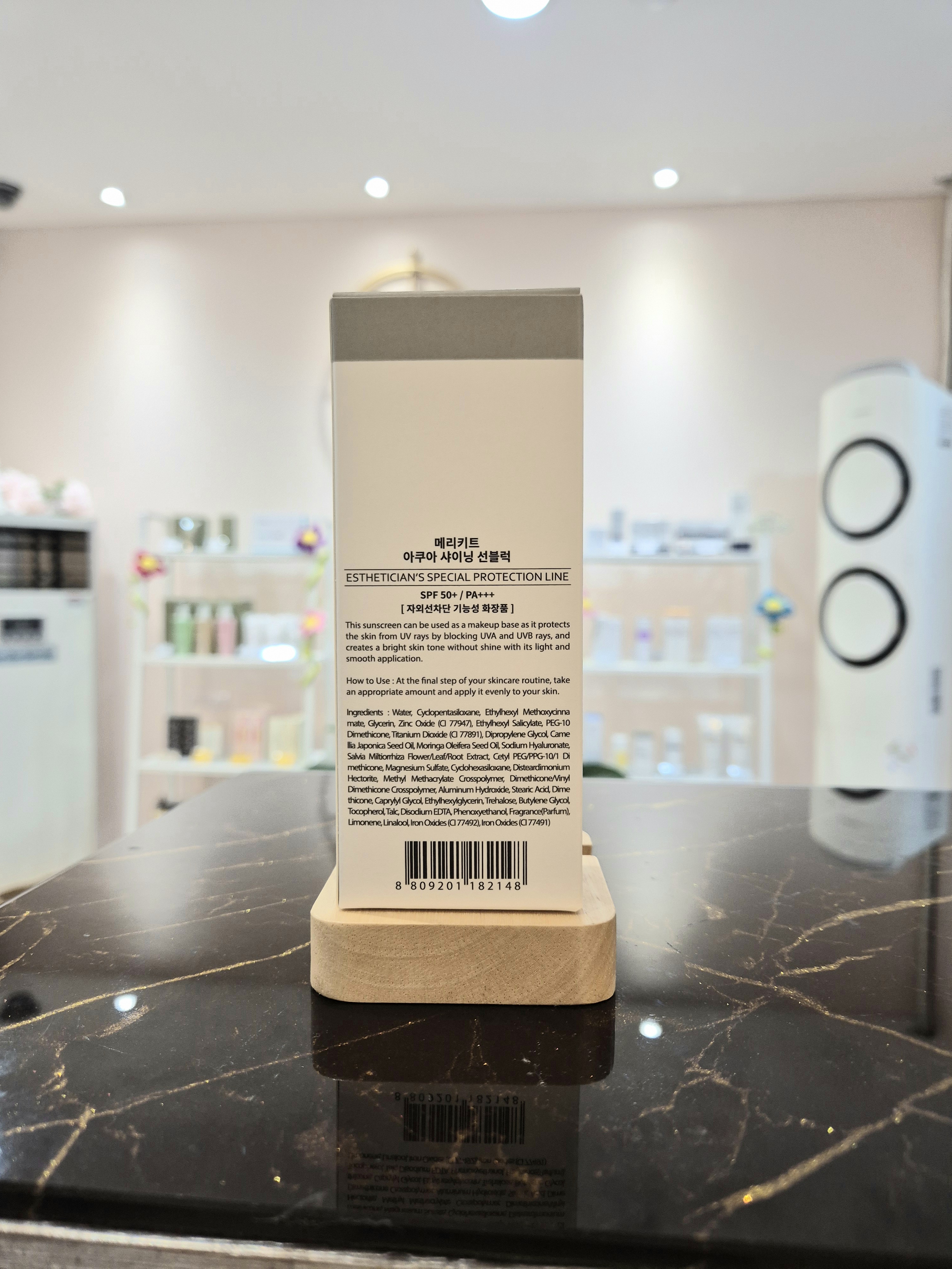 그래서! 제가 요즘 매일 쓰는 제품, 바로 메리키트 아쿠아 샤이닝 선블록이에요.