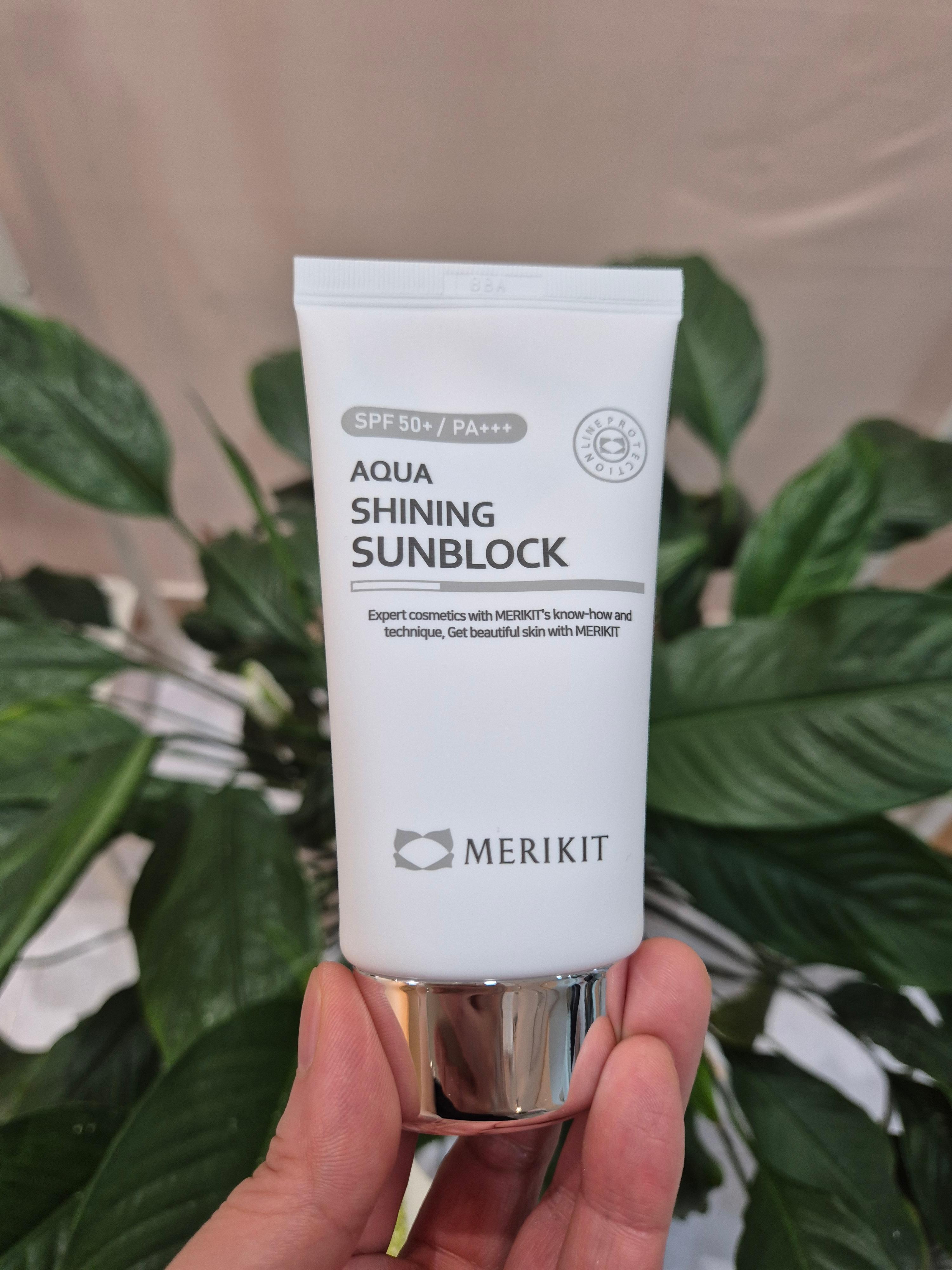 백탁 없이 자연스럽고, 메이크업 밀림도 적은 메리키트 아쿠아 샤이닝 선블록은
