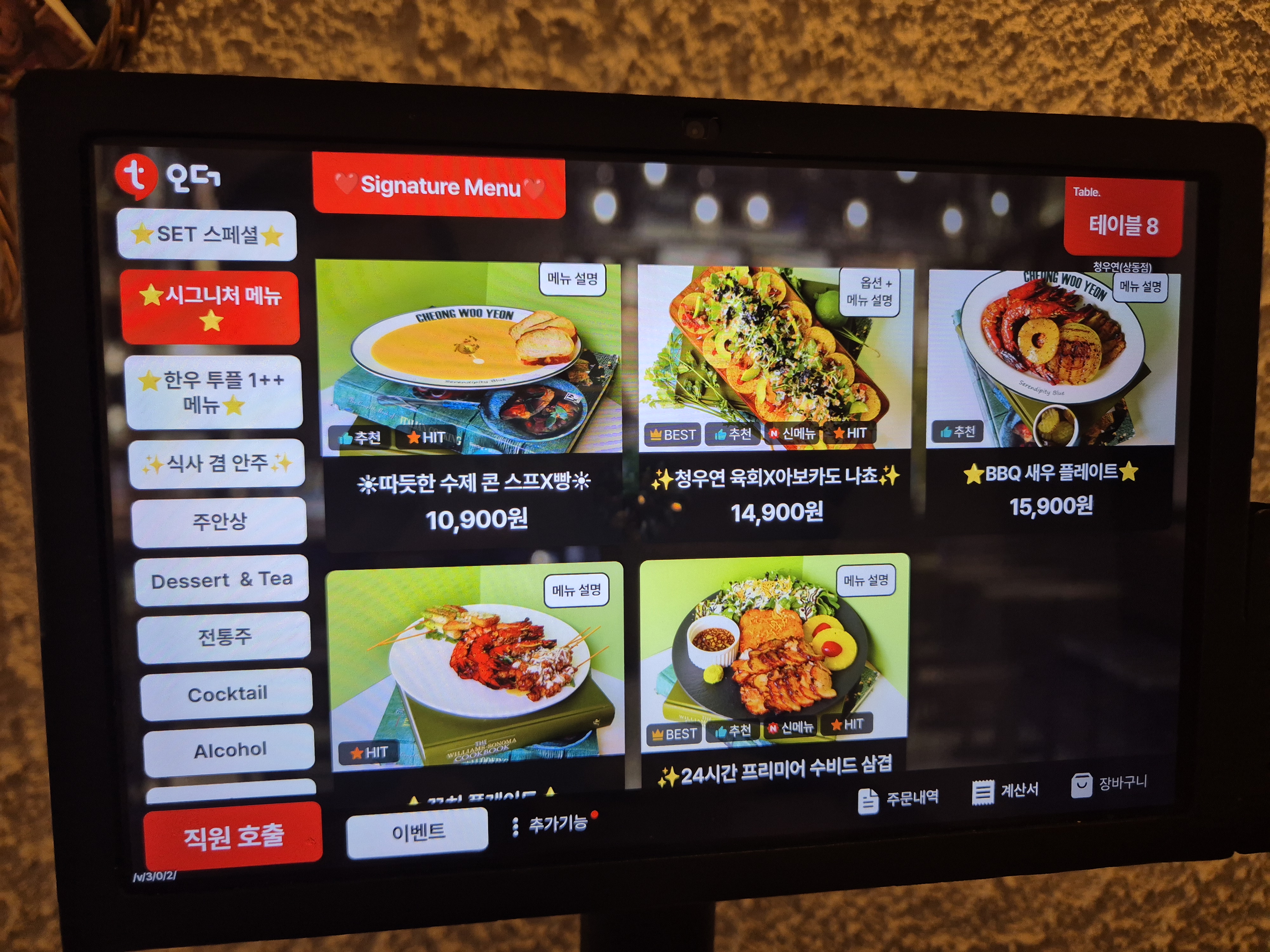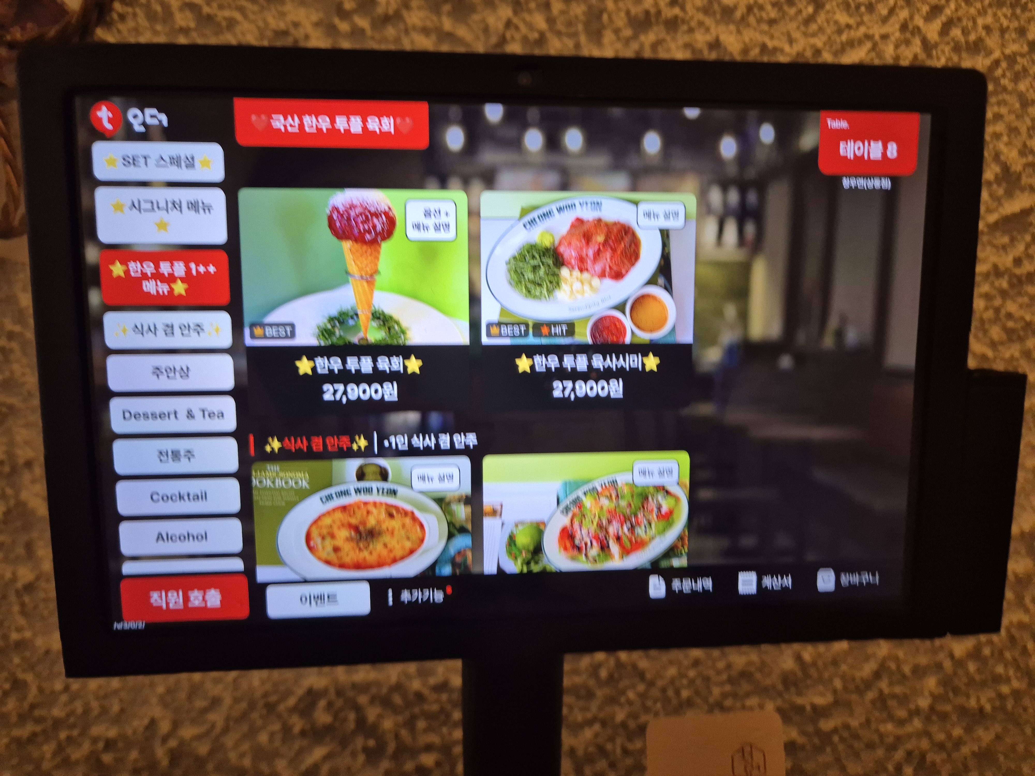 메뉴판에서 가장 먼저 눈에 들어온 건 역시 육회비빔밥.