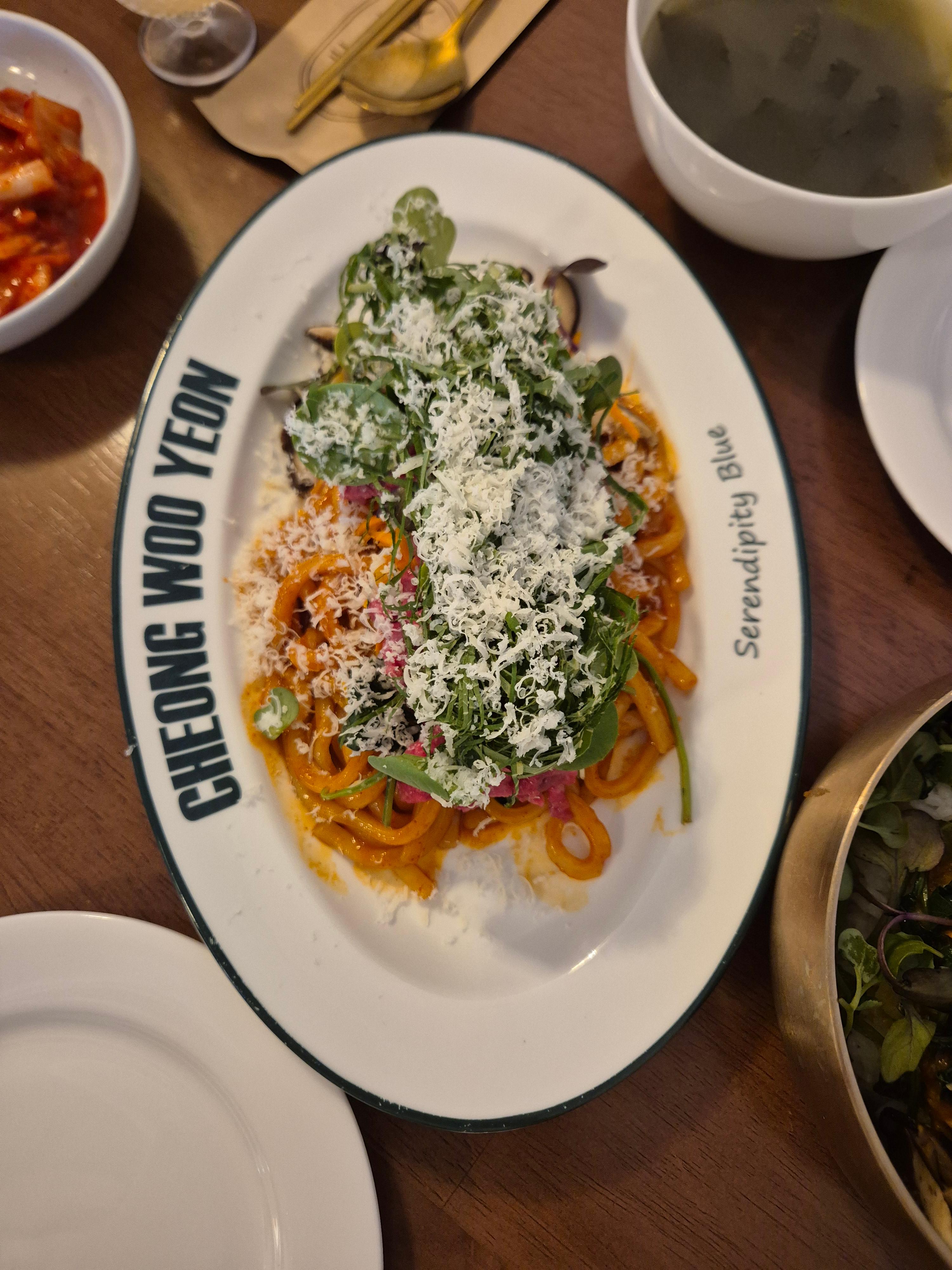 우동 면발의 쫄깃함과 차갑게 준비된 한우 육회가 의외로 잘 어울리더라고요.