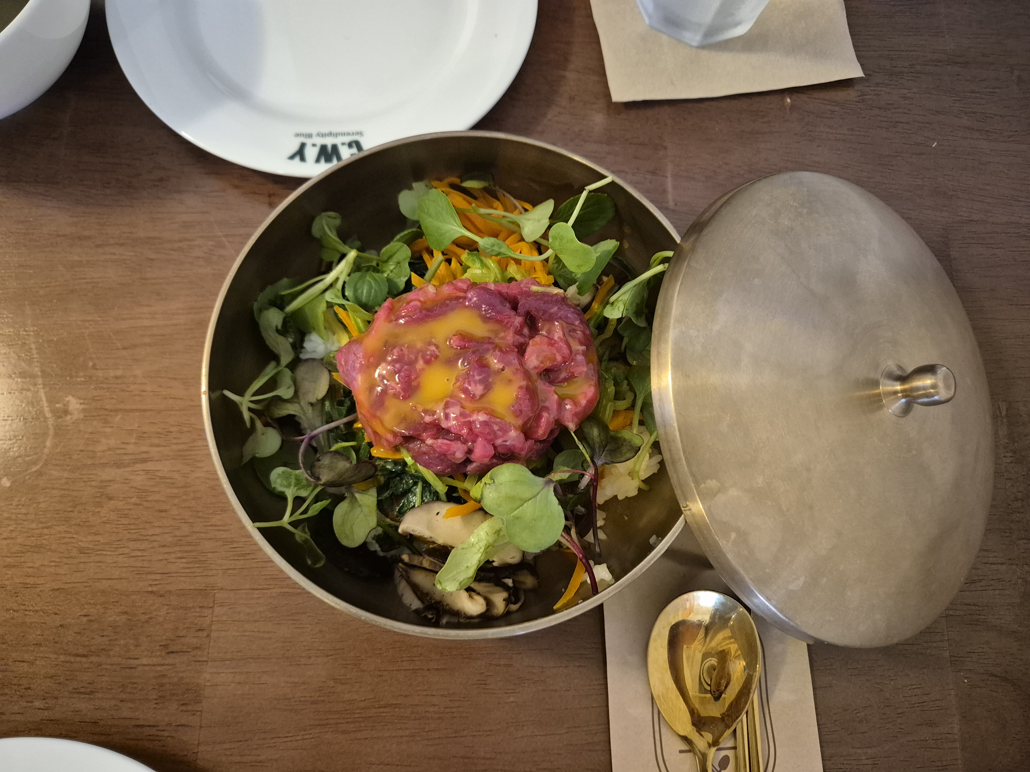 메뉴판에서 가장 먼저 눈에 들어온 건 역시 육회비빔밥.