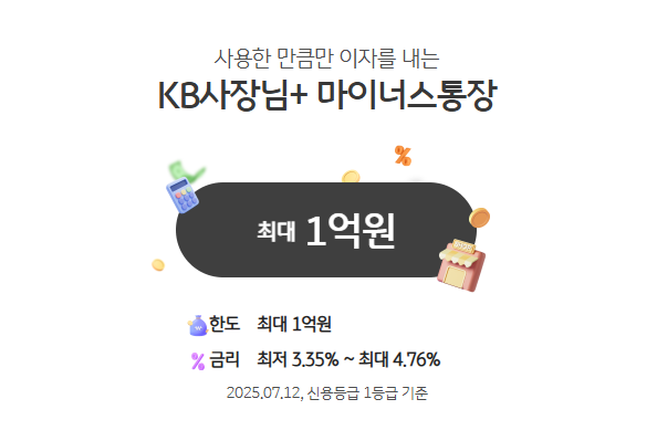 KB사장님+ 마이너스통장은 국민은행이 소상공인 및 자영업자를 위해 출시한 신용대출형 마이너스통장 상품입니다.